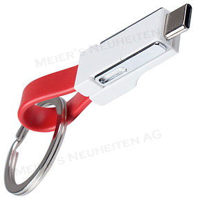 3 in 1 Ladekabel mit kombiniertem iPhone-Android Anschluss inklusive USB-C Anschluss mit einem Schlüsselring. Das Kabel hält mittels Magnetverschluss. Mit dem Ladekabel können Mobiltelephones, Tablets usw. verbunden und geladen werden!