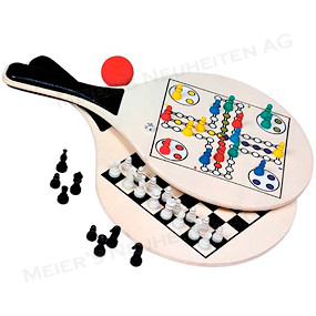 Bemerkungen: Der Beachball-Set besteht aus 2 Holtschlägern mit Eile und Weile und Schach inkl. Würfel und Spielfiguren.