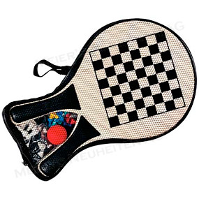 Beschreibung: Beachball Spielset Eile mit Weile und Schach mit 2 Holzschlägern
