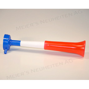 Membranenhorn mit patentierter Membran-Technik. Das Teleskop-Horn erreicht annähernd die Schallleistung einer herkömmlichen Gasdruckfanfare, wird aber lediglich mit Atemluft betrieben.
