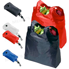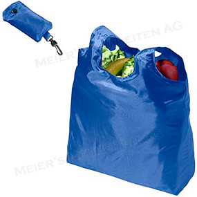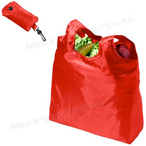 Faltbare Polyestertasche im kleinen Polyesteretui mit Druckknopf. Inklusive Haken für den Schlüsselbund oder zum Anhängen an die Tasche.