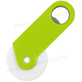 Pizzaschneider mit stabilem grossem Schneidrad und integriertem Flaschenöffner.