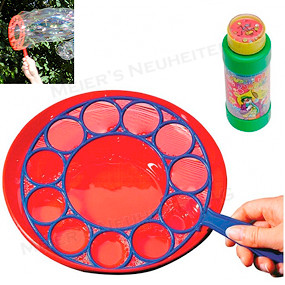 Bemerkungen: Seifenblasenspiel 3-tlg. für Superblasen inkl Flugscheibe und Geduldspiel im Deckel.
