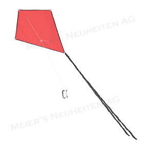 Bemerkungen: Da geht die Werbebotschaft in die Luft. Schöner grosser Drachen in traditioneller Form aus Polyester mit schwarz abgesetztem Rand und schwarzem Schweif mit einem ultraleichten stabilen Glasfaser-Rahmen. Kunststoffspule mit 20 Meter langer zugschnur.