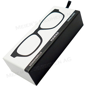 Gläsern kann diskret innen oder prominent aussen auf den breiten Bügeln platziert werden. Die Brille wird mit einem Microfaser Reinigungsbeutel zusammen in einer eleganten Geschenkbox geliefert.